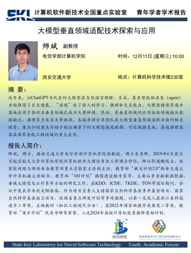 2024年12月11日 “软件新技术讲坛” 学术报告 - 师斌 副教授