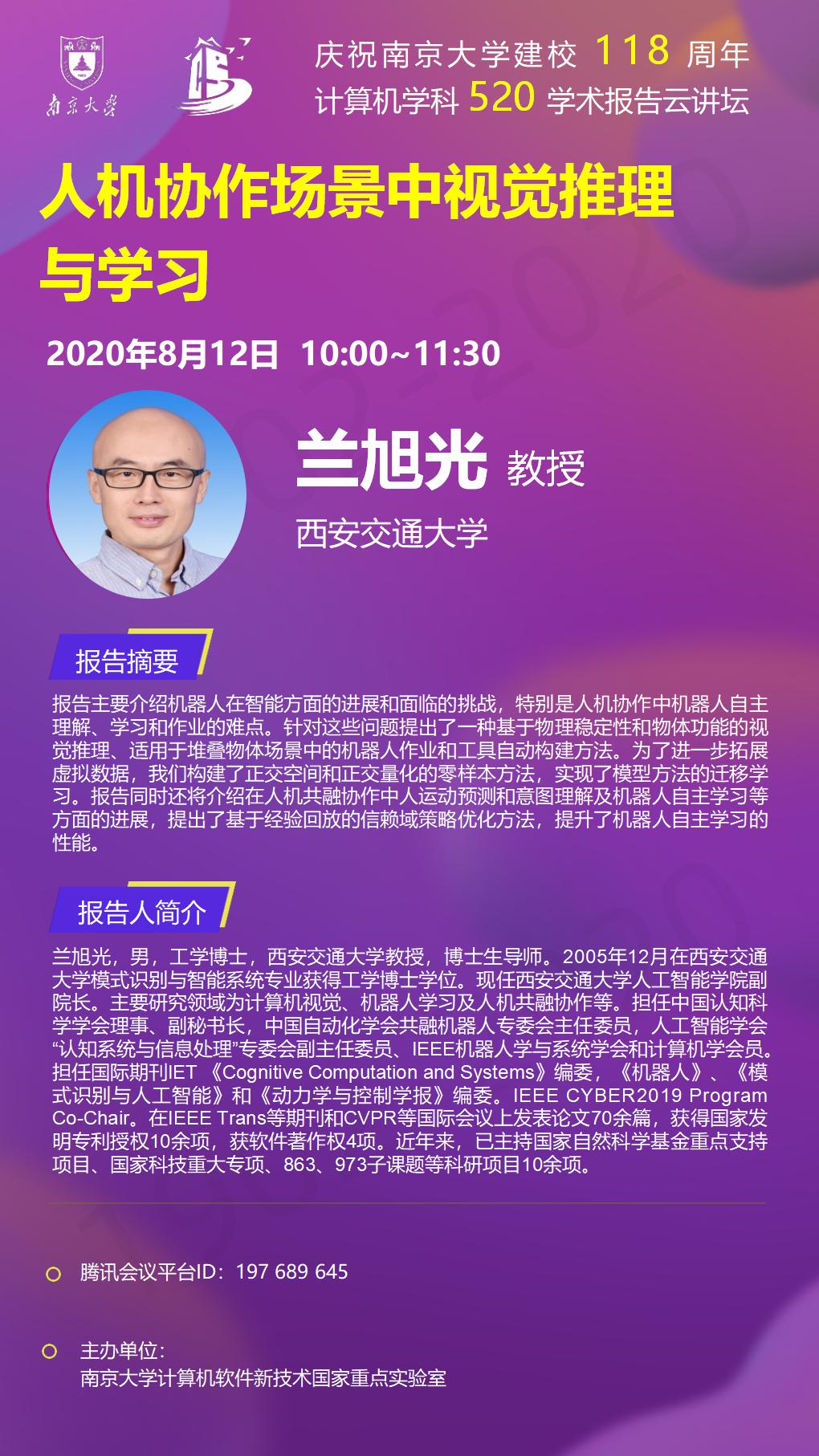 庆祝伟德国际1946bv建校118周年 计算机学科520学术报告云讲坛- 兰旭光 教授