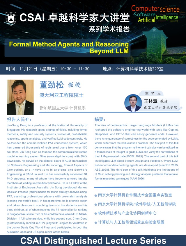 2025年11月21日“CSAI 卓越科学家大讲堂” 学术报告 - 董劲松 教授