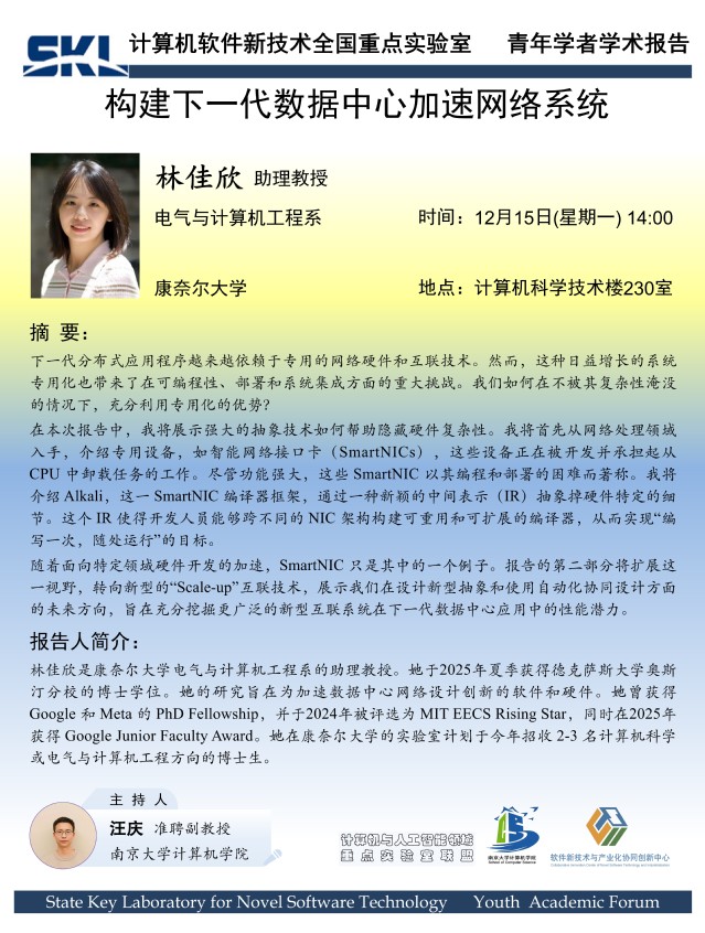 2025年12月15日“软件新技术讲坛”学术报告 - 林佳欣 助理教授
