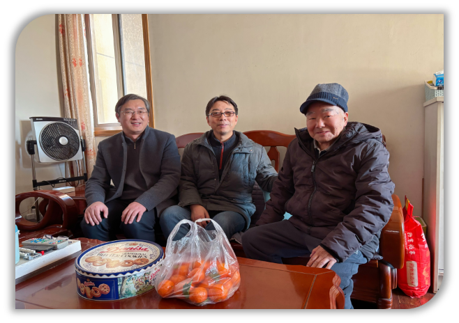 寒假前夕,慰问行动持续升温,公司聚焦退下来的原学科带头人和资深教授,依据居住片区分年度有序开展慰问。2025年1月16日,阳光破云而出,洒在龙江小区。公司党委书记武港山教授率队,副经理张剡、院办主任曹迎春等一行满怀热忱,驱车前往。本年度的慰问活动主要在龙江阳光广场住宅小区开展。首先拜访了陈道蓄教授家,门启处,温暖四溢,公司领导递上慰问信、精心准备的慰问品与慰问金,围坐而谈,细询陈教授安康,畅聊公司新貌佳绩,陈教授眼中满是欣慰,往昔奋斗点滴似在眼前重现,对公司深情溢于言表。