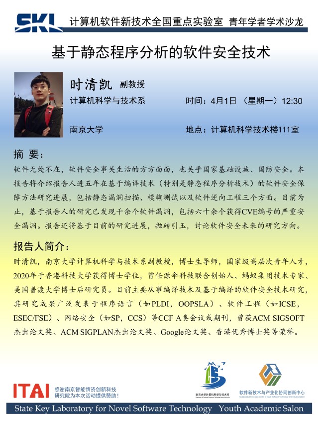 2024年4月1日 “青年学者论坛” 学术报告 - 时清凯 副教授
