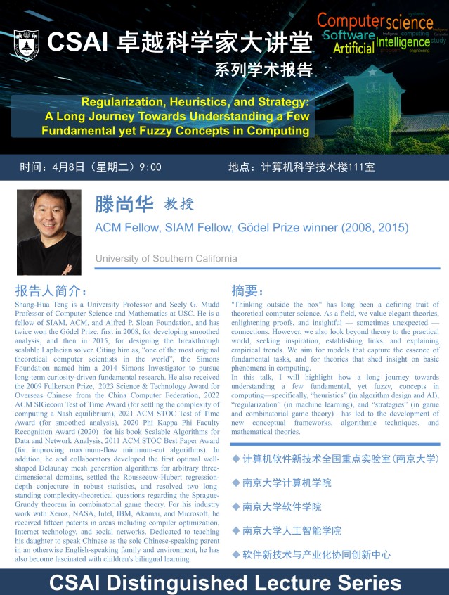 2025年4月8日 “CSAI卓越科学家大讲堂” 学术报告 - 滕尚华 教授