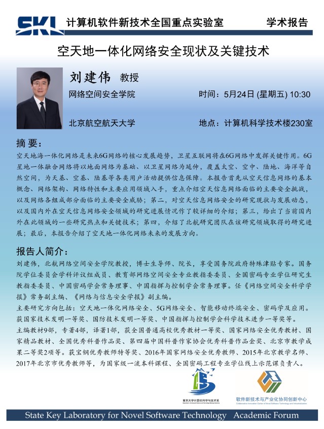 2024年5月24日 “软件新技术讲坛” 学术报告 - 刘建伟 教授