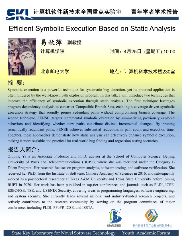 2025年4月25日 “软件新技术讲坛” 学术报告 - 易秋萍 副教授