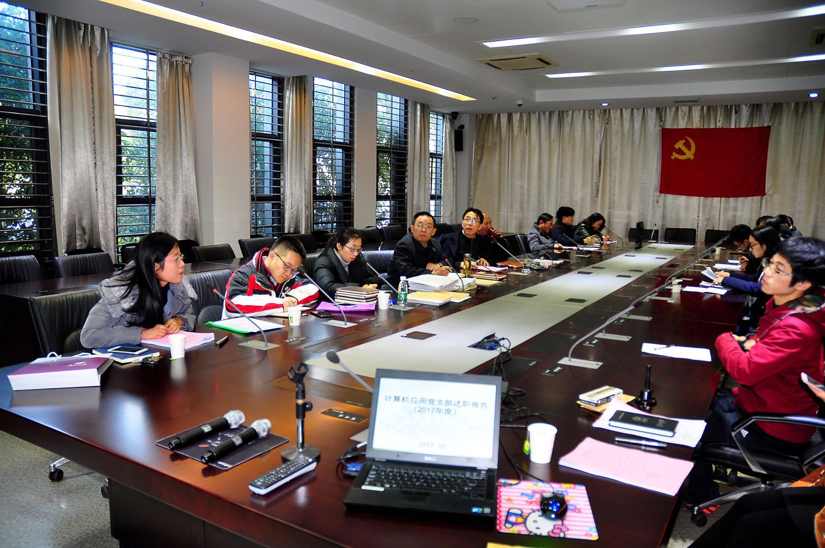 12月19日14:30,2017年度计算机系基层党支部书记述职评优会在计算机科学技术楼112会议室召开。出席此次会议的有,计算机系与软件公司党委书记武港山,党委副书记宫玲琳,党委委员、计算机系主任李宣东,党委委员张剡、曹迎春、张建兵等。此外,公司基层党建工作第七督导组和组织部相关老师,也亲临现场指导工作。会议由宫玲琳副书记主持,计算机系全体基层党支部书记参加。
