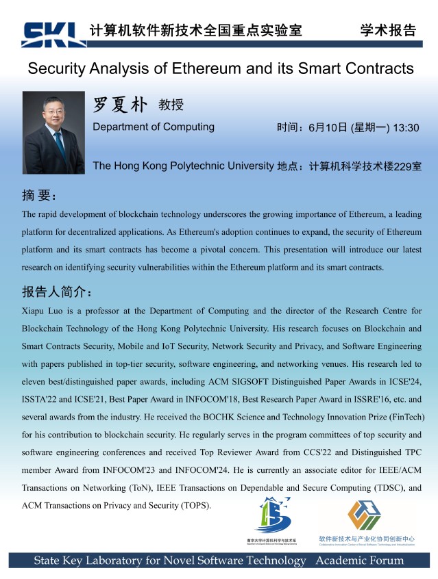 2024年6月10日 “软件新技术讲坛” 学术报告 - 罗夏朴 教授