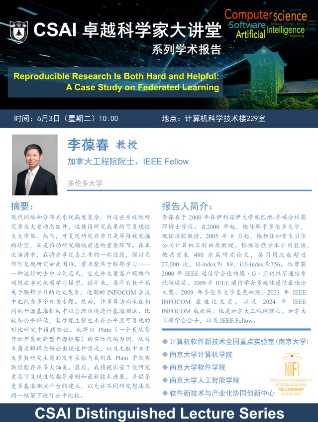 2025年6月3日 “CSAI卓越科学家大讲堂” 学术报告 - 李葆春 教授