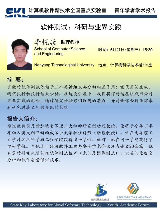 2023年6月21日 “软件新技术讲坛” 学术报告 - 李悦康 助理教授