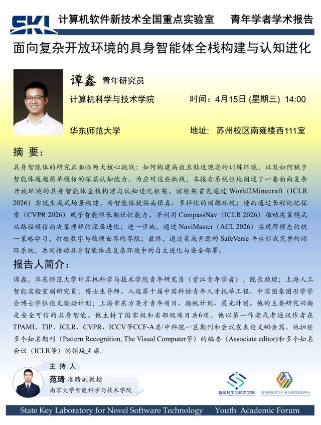 2026年4月15日“软件新技术讲坛”学术报告 - 谭鑫 青年研究员