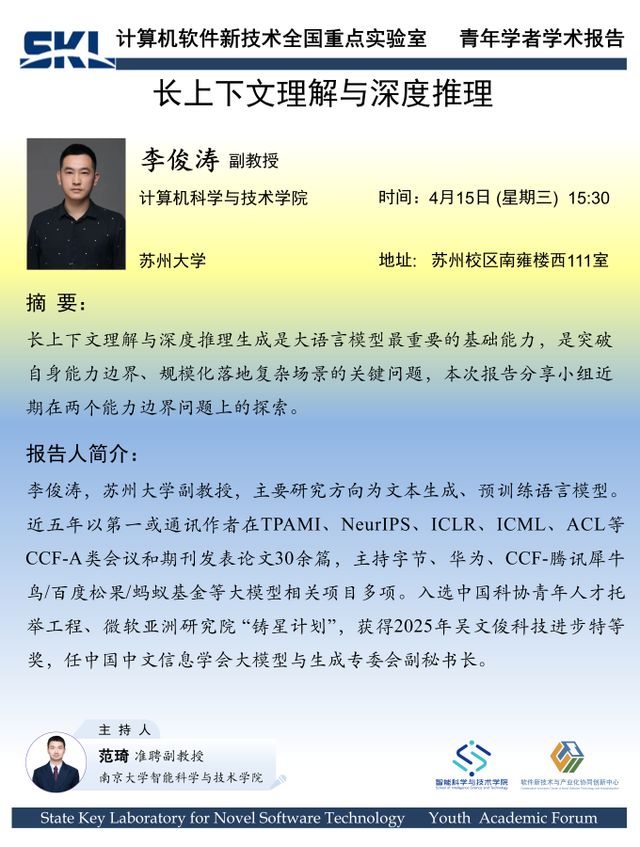 2026年4月15日“软件新技术讲坛”学术报告 - 李俊涛 副教授