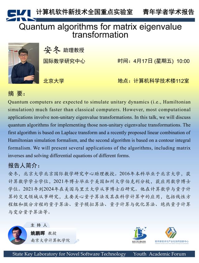2026年4月17日“软件新技术讲坛”学术报告 - 安冬 助理教授