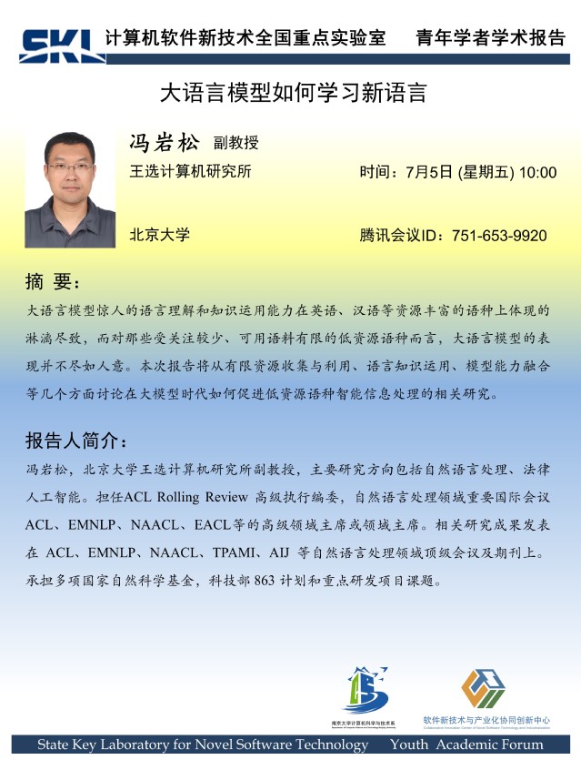 2024年7月5日 “软件新技术讲坛” 学术报告 - 冯岩松 副教授