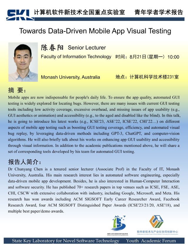 2023年8月21日 “软件新技术讲坛” 学术报告 - 陈春阳 Senior Lecturer