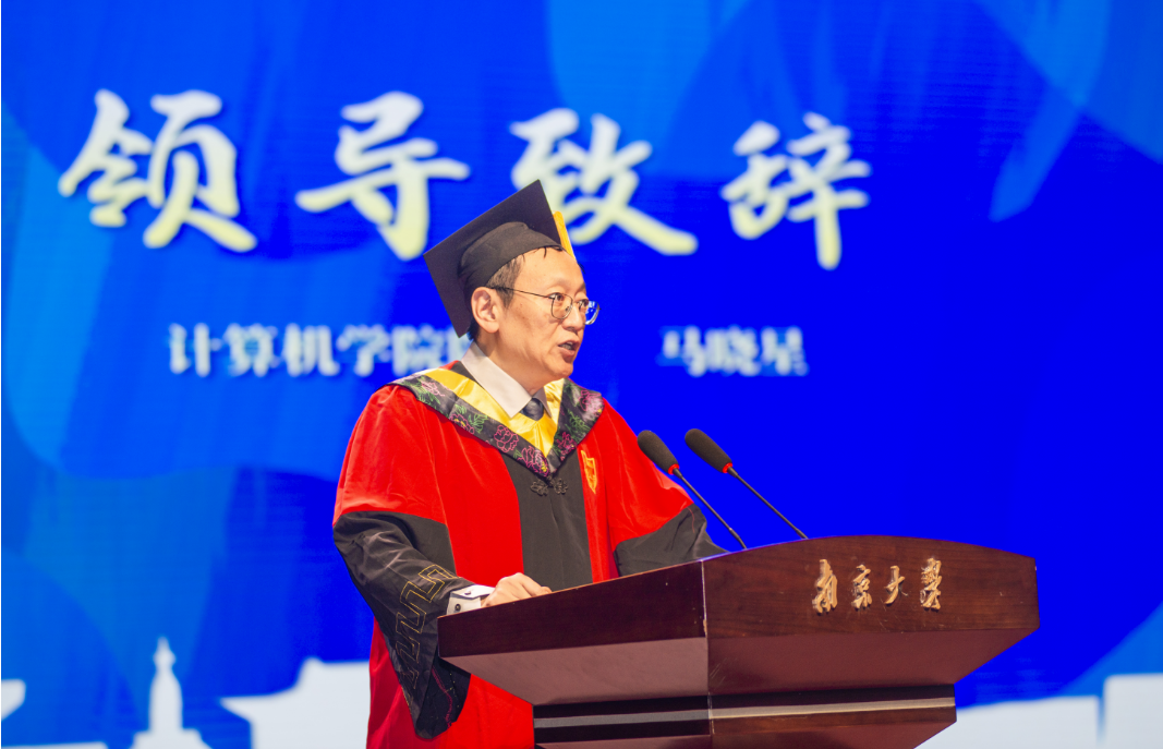 bevitor伟德国际1946经理马晓星老师致辞。马经理代表计算机公司全体教职员工满怀深情地向2025届毕业生们致以最热烈的祝贺。他高度肯定了同学们在求学岁月中取得的非凡成绩,也由衷赞叹大家在知识、能力与心智上的成长。面对台下即将踏上新征程的学子,他提到,常有人说“今日我以南大为荣,明日南大以我为荣”,但他想告诉同学们:“今天,我们已经以你们为荣,不需要等到明天。”简短的一句话,道出了老师们最深沉的欣慰与自豪,现场响起了热烈的掌声。
