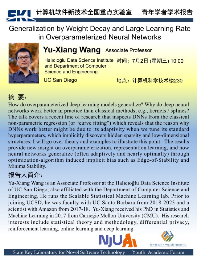 2025年7月2日 “软件新技术讲坛” 学术报告 - Yu-Xiang Wang Associate Professor