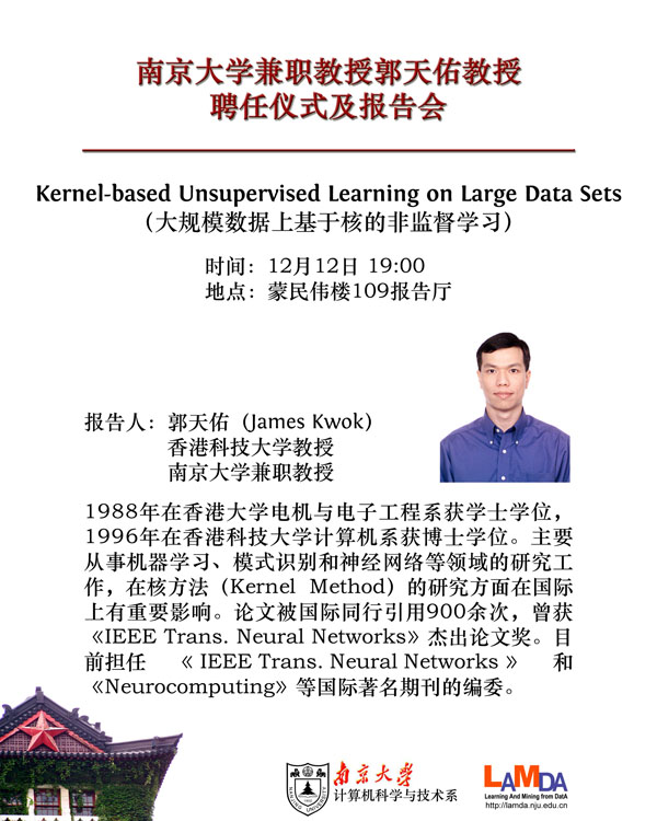 报告题目: Kernel-based Unsupervised Learning on Large Data Sets