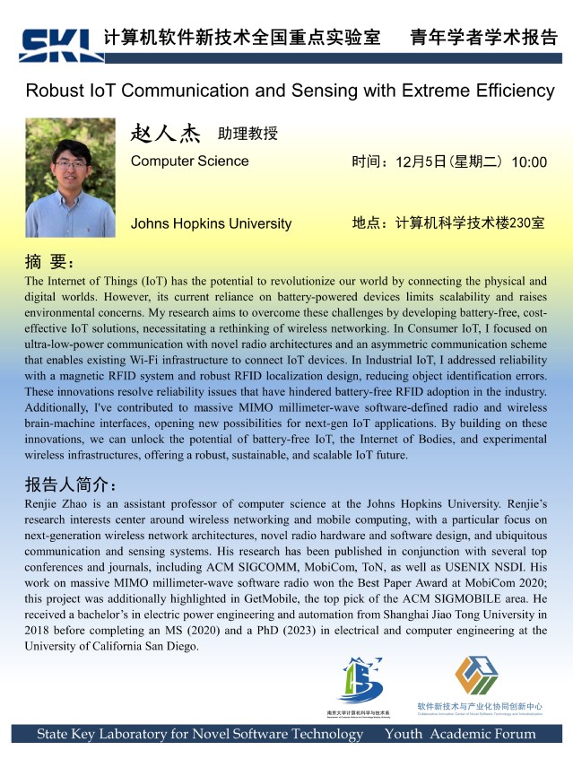 2023年12月5日 “软件新技术讲坛” 学术报告 - 赵人杰 助理教授