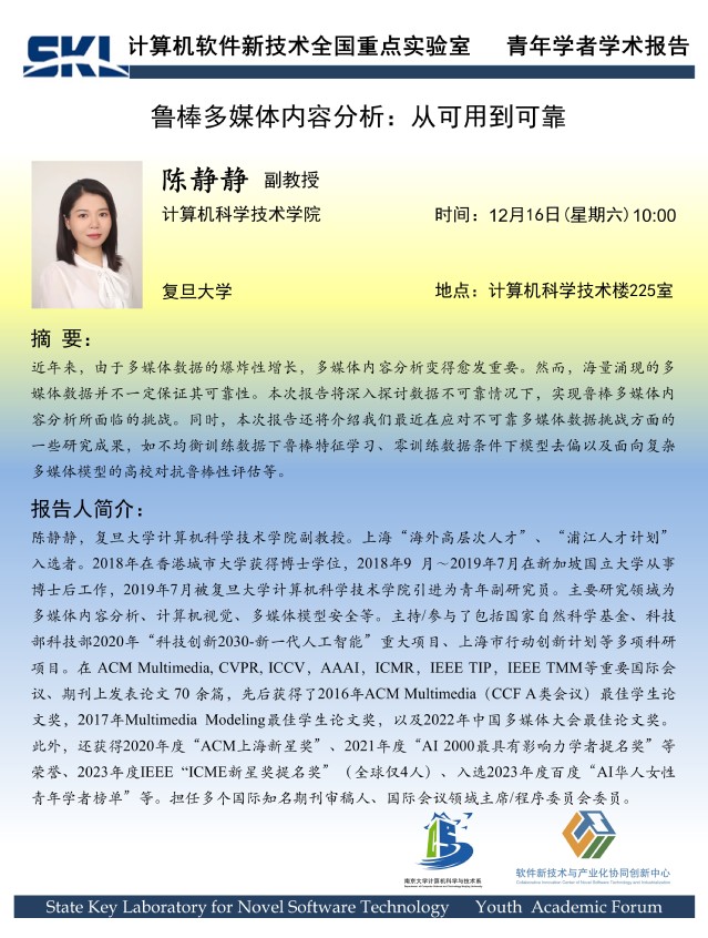 2023年12月16日 “软件新技术讲坛” 学术报告 - 陈静静 副教授