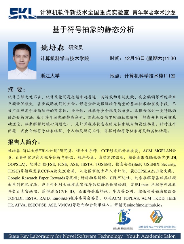 2023年12月16日 “青年学者论坛” 学术报告 - 姚培森 研究员
