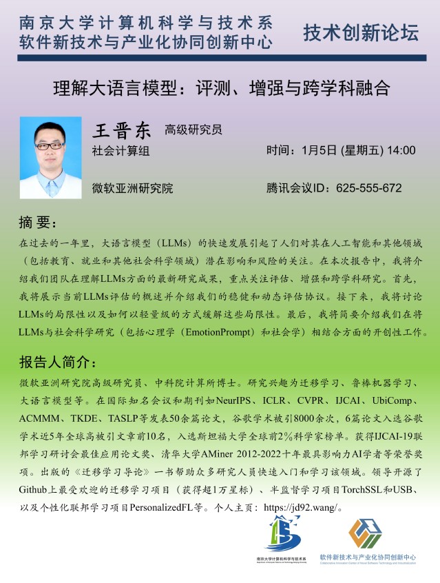 2024年1月5日 “技术创新讲坛” 学术报告 - 王晋东 高级研究员