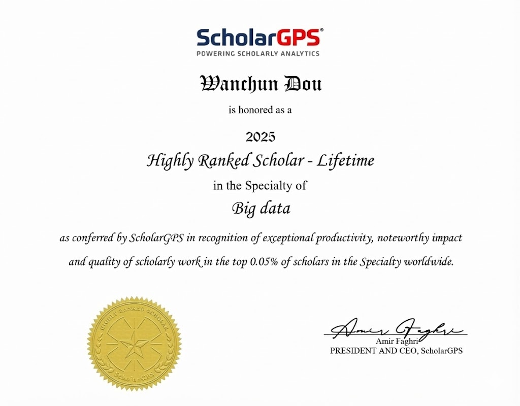 窦万春,男,1971年生,伟德国际1946bv计算机科学与技术系教授,博士研究生导师,中国计算机学会 “协同计算”专家委员会委员,电子学会“云计算”专家委员会委员,江苏省“云计算专家论坛”副主任委员,江苏省“大数据”专家委员会委员。2001年-2002年在伟德国际1946bv计算机科学与技术系从事博士后科研工作,2005.4-2005.6与2008.11-2009.2期间先后在香港科技大学计算机科学与工程系进行访问研究,2006年入选教育部“新世纪优秀人才资助计划”,2013年入选江苏省“六大人才高峰"计划(A类),2022年入选江苏省“333高层次人才培养工程”第二层次培养对象。作为项目负责人,先后主持国家重点研发项目(首席科学家)、5项国家自然科学基金项目、6项江苏省重点研发计划/江苏省科技支撑计划/自然科学基金等,相关研究成果获2018年江苏省科学技术一等奖(自然科学奖)、2023年山东省科学技术奖二等奖(自然科学奖)、2025年云南省科学技术奖二等奖(自然科学奖)。作为课题组成员,先后参与国家基础研究计划(973)、863、国家自然科学基金重点项目、国家重大研究计划、国家重点研发计划等科研项目。分别在国际期刊IEEE Transactions on Computers(CCF-A类期刊)、IEEE Transactions on Parallel and Distributed Systems(CCF-A类期刊)、IEEE Transactions on Information Forensics and Security(CCF-A类期刊)、IEEE Journal on Selected Areas In Communications(CCF-A类期刊)、ACM Transactions on Multimedia Computing, Communications, and Application、IEEE Transactions on Services Computing、IEEE Transactions on Automation Science & Engineering、IEEE Transactions on Big Data、IEEE Transactions on Multimedia、IEEE Transactions on Cloud Computing、IEEE Transactions on Emerging Topics in Computing、IEEE Transactions on Industrial Electronics、IEEE Transactions on Sustainable Computing、Journal of Computer and System Sciences、Information and Management、Future Generation Computer Systems、Decision Support Systems、Concurrency and Computation: Practice and Experience、The Journal of Supercomputing以及领域内知名国际会议INFOCOM(CCF-A类会议)、ICDE(CCF-A类会议)等上发表或录用论文200余篇(10余篇最佳会议论文,20余篇高被引论文),出版中英文论著3部。最近5年,Google Scholar统计的引用量9000余次。2023年入选斯坦福大学发布的世界顶尖科学家榜单,2024年入选国际学术机构ScholarGPS发布的全球0.05%顶尖科学家榜单,2025年入选国际学术机构ScholarGPS发布的全球0.05%顶尖科学家终身榜单(Lifetime)。