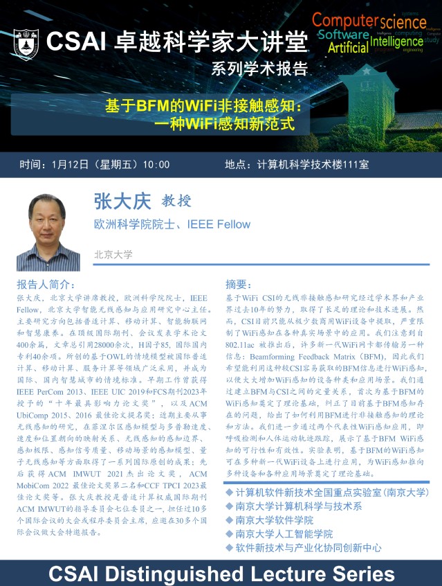 2024年1月12日 “CSAI卓越科学家大讲堂” 学术报告 - 张大庆 教授