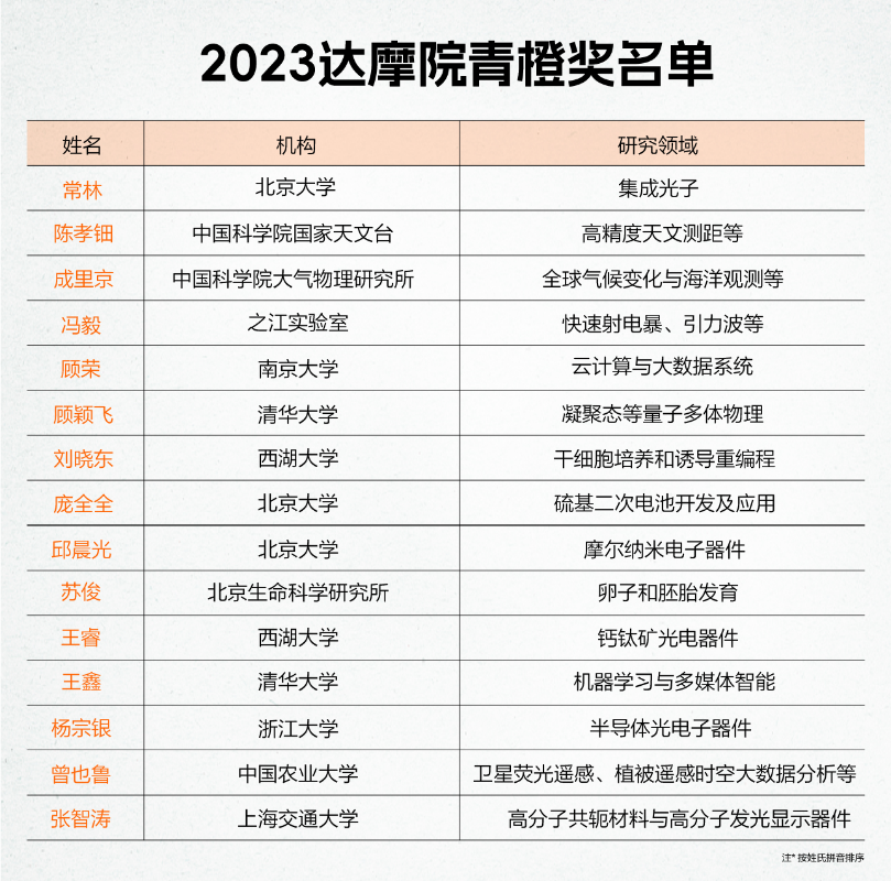 达摩院青橙奖于2018年由阿里巴巴公益、达摩院联合发起,旨在发掘和帮助更多对科技进步有重要推动作用的35岁以下中国青年科学家,鼓励他们在重大科研攻坚中挑大梁,未来成为中国科学研究中坚力量。达摩院青橙奖面向广泛的科学研究领域,包括数学与物理类、化学与材料类、生命科学与医学类、天文与地学类、信息科学与工程类、新兴交叉科学类等。有别于一般的科学奖项评选,青橙奖选拔摒弃传统的论文和资历评审标准,重视参评人科研成果的科技创新性、成果价值影响力及社会影响力