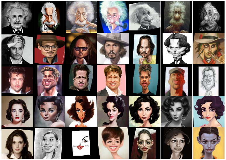 It is a large photograph-caricature dataset consisting of 6042 caricatures and 5974 photographs from 252 persons collected from the web. |