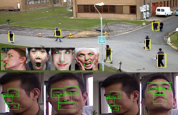 基于RGB或RGBD视频,研究实现人脸相关的特征提取和识别、行人或群体的检测和跟踪。为后续行为语义分析等工作奠定基础。 | |