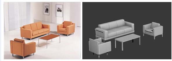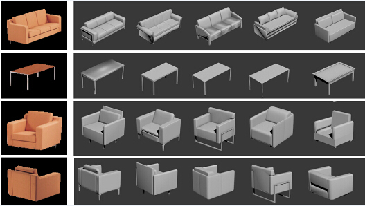 An overview of our approach. With an input indoor scene image, the output 3D scene is reconstructed with a two-stage process: image analysis and model retrieval.